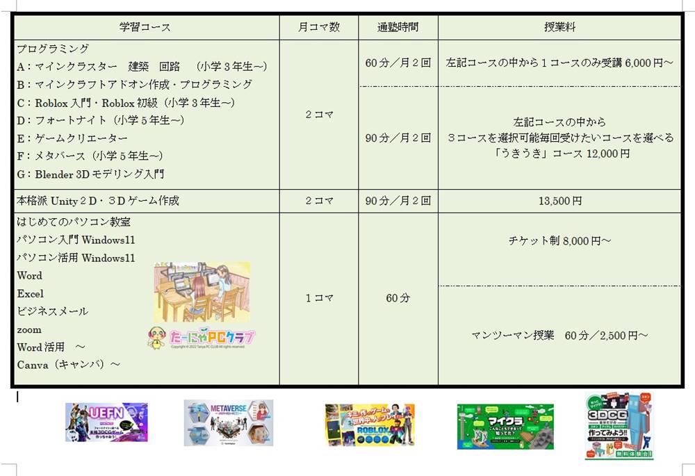 入会金 11,000円 《HPからのお問い合わせやお友達からの紹介でご入会の場合は入会金無料》 ご兄弟・姉妹・お友達 割引適用あり! 開講日 月曜日から金曜日 10:00~19:00 毎週土曜日&日曜日 ①10:00~11:30 ②13:30~15:00 原則、毎月5週目は休講 上記金額すべて税込表記 無料体験レッスン 無料体験レッスンの受付はこちら→お問い合わせページ